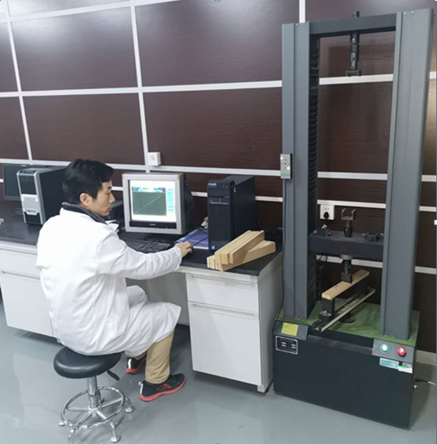 家具装饰材料所里,康猛同志正在进行人造板检测