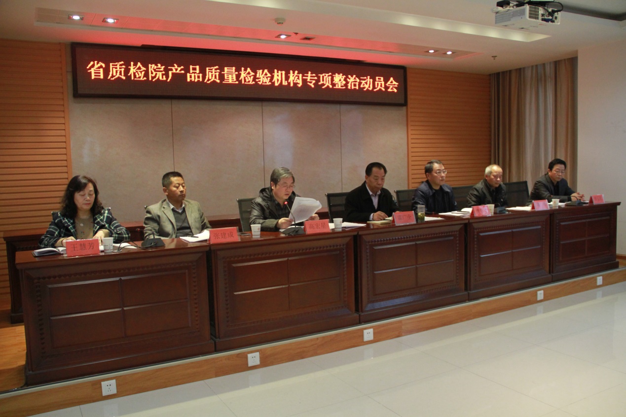 为了学习贯彻党的十九大精神,落实省局“关于在全省开展产品质量检验机构专项整治工作”要求,2017年11月29日上午9:00时,省质检院召开了检验机构专项整治动员大会,会议由高宏星总工程师主持,雷广全院长作了动员讲话,樊育平书记作了廉政教育,高宏星总工组织进行了文件学习并部署安排了专项整治具体工作。院领导班子全体成员、院中层干部及专业技术人员共90人参加了会议。