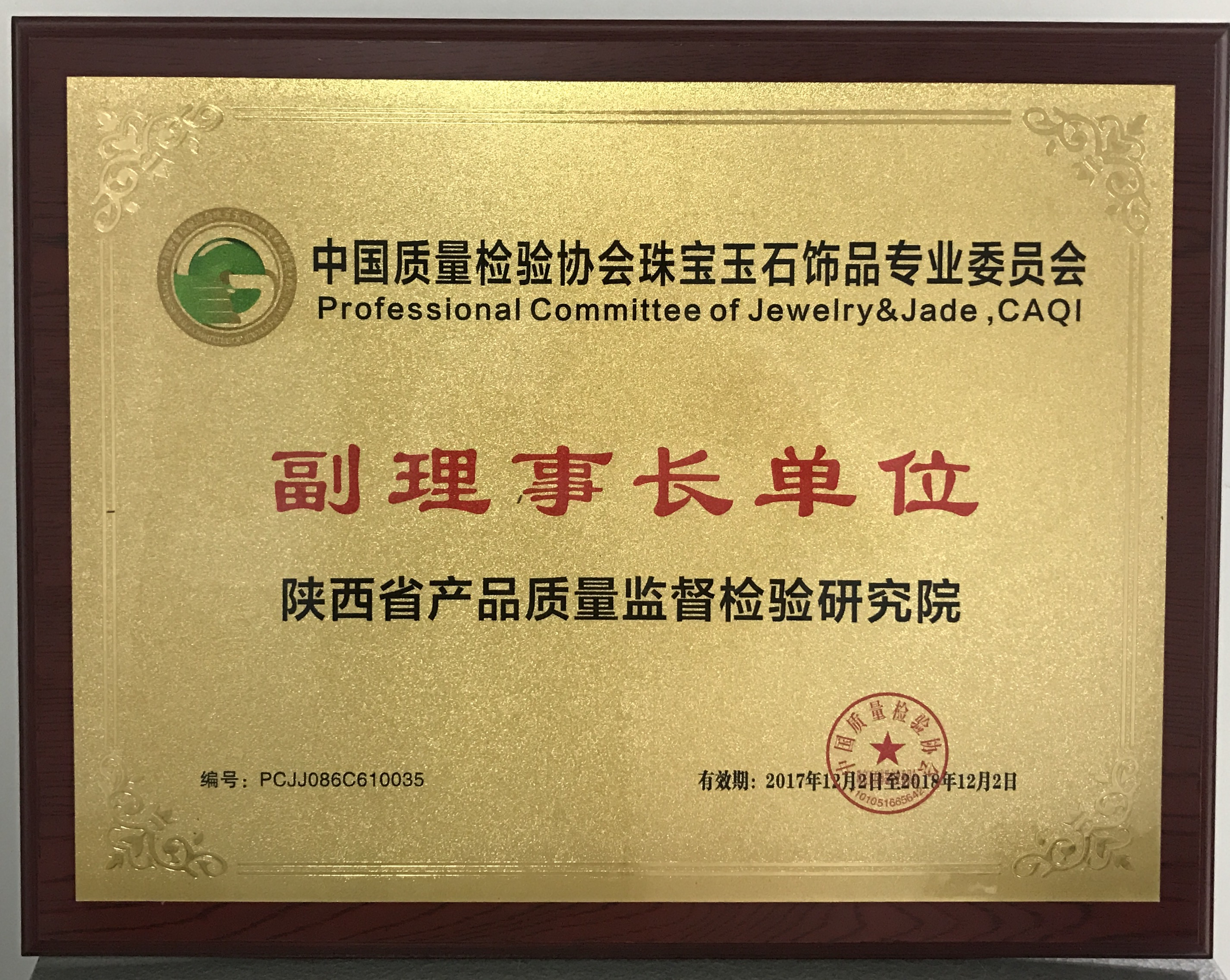 2017年12月2日,中国质量检验协会珠宝玉石饰品专业委员会在京成立。大会选举产生了中国质量检验协会珠宝玉石饰品专业委员会第一届理事会,陕西省产品质量监督检验研究院当选为副理事长单位。