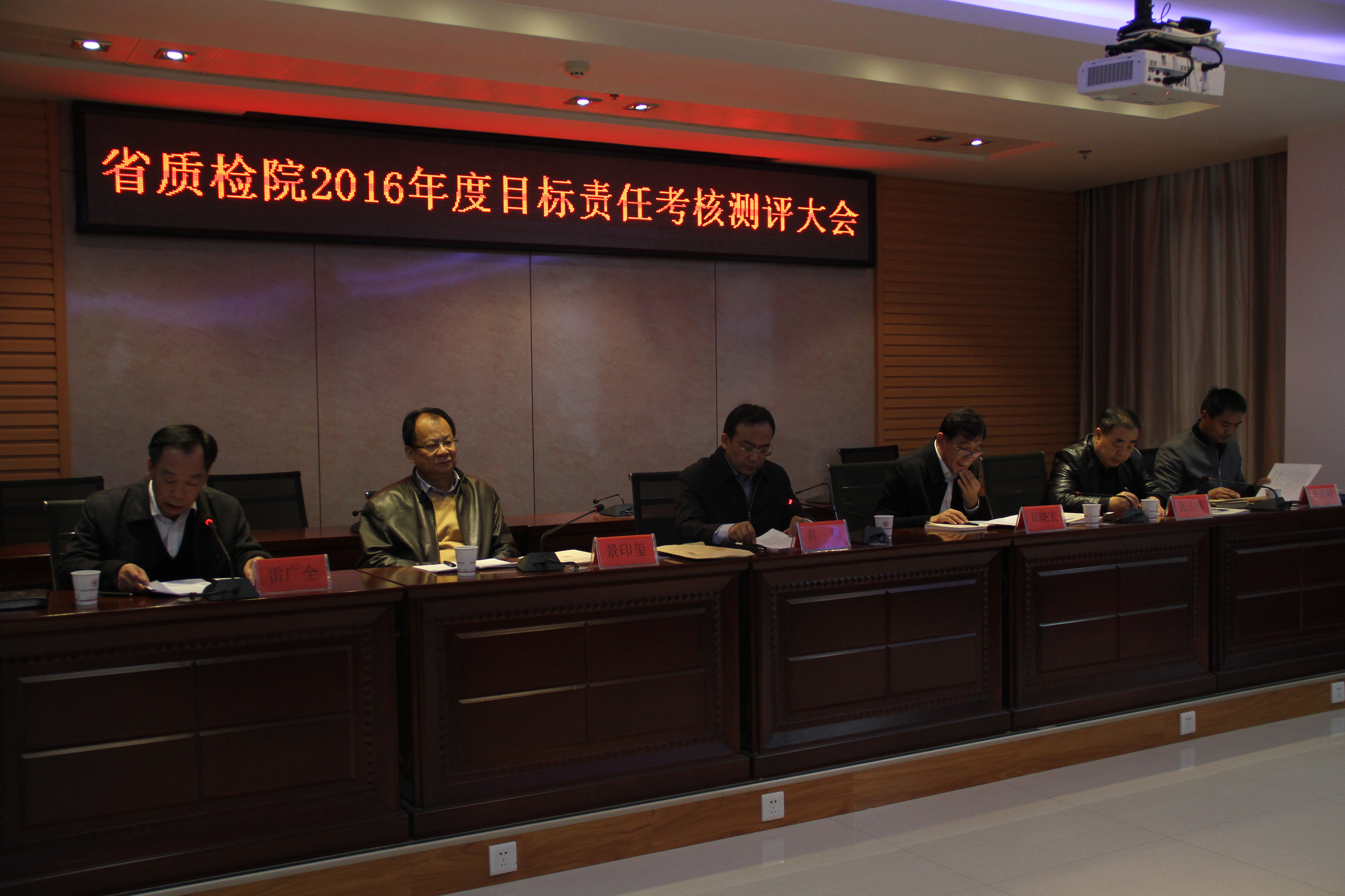 2016年12月12日,省局第三考核组一行5人在组长高阳副局长的带领下,对省质检院2016年度目标任务完成情况进行考核。考核采取召开考核测评大会、个别谈话、查阅见证资料和对领导班子进行无记名民主测评4个环节进行。会议由省质检院院长雷广全主持,院领导班子成员和中层以上干部参加了会议。