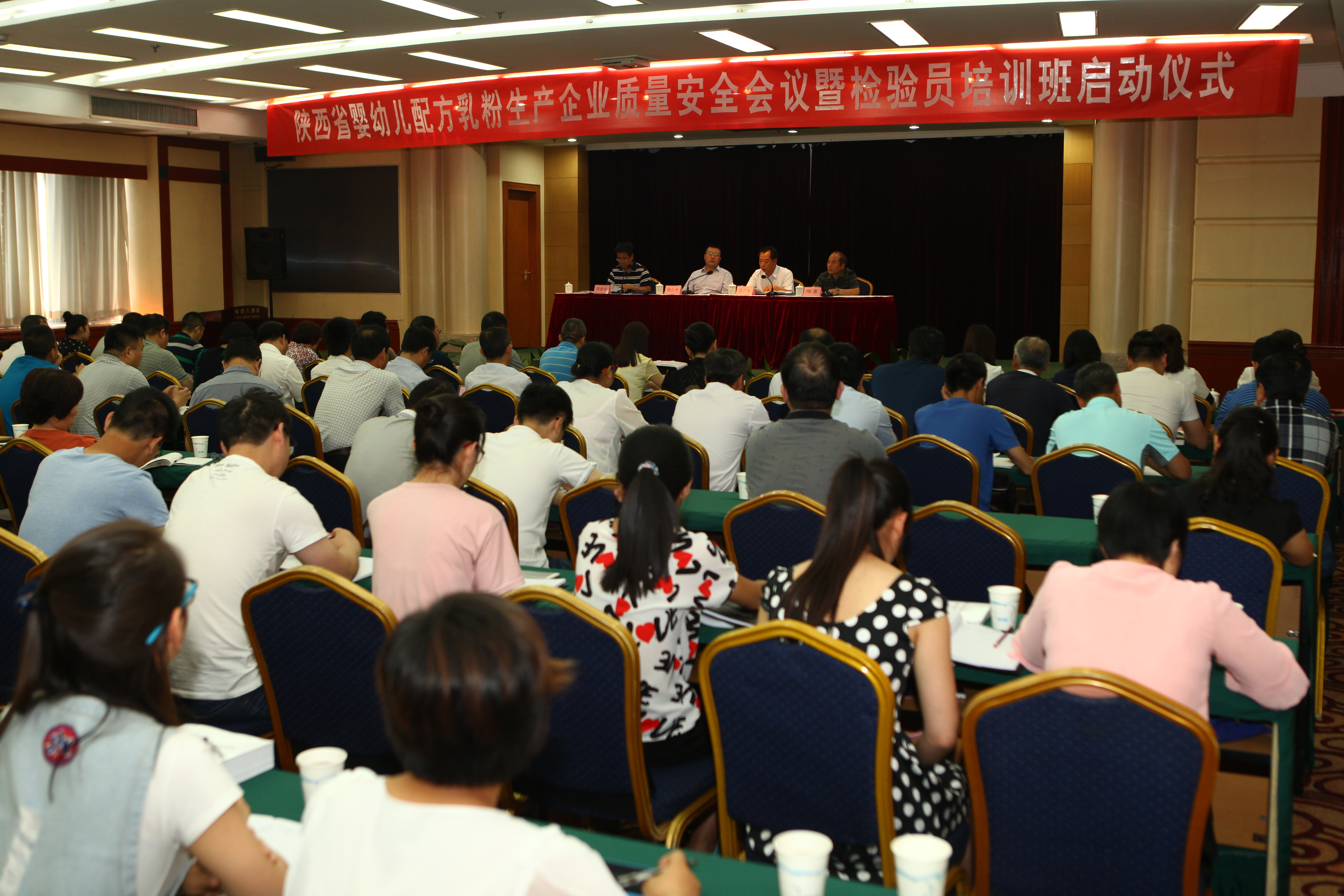 6月17日上午,陕西省食品药品监督管理局主办的《全省婴幼儿配方乳粉生产企业质量安全会议暨检验员培训班启动仪式》在西安南洋酒店召开。省食药局局长胡小平、省食药局乳制品及饮品监管处处长邵君利,副处长段勇;省质检院党委书记雷广全、省质检院副院长陈勇、樊育平等出席了会议,18家婴幼儿配方乳粉生产企业法人代表、质量授权人、检验员培训班第一期学员共计120人参加了会议。会议由邵君利处长主持,省质检院雷广全书记作了开班仪式致辞,省食药局局长胡小军发表重要讲话。
