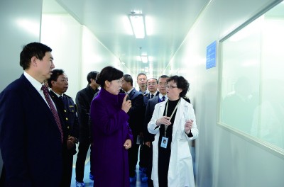 陕西省副省长王莉霞(右二)在省质监局局长乔军(左一)陪同下,深入陕西省质检院调研。