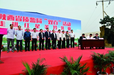 陕西省质监局“双百”活动走进陕西渭南市富平县红星美羚乳业公司。在活动现场,陕西省质检院、富平市场监管局、红星美羚乳业公司签订三方服务协议。