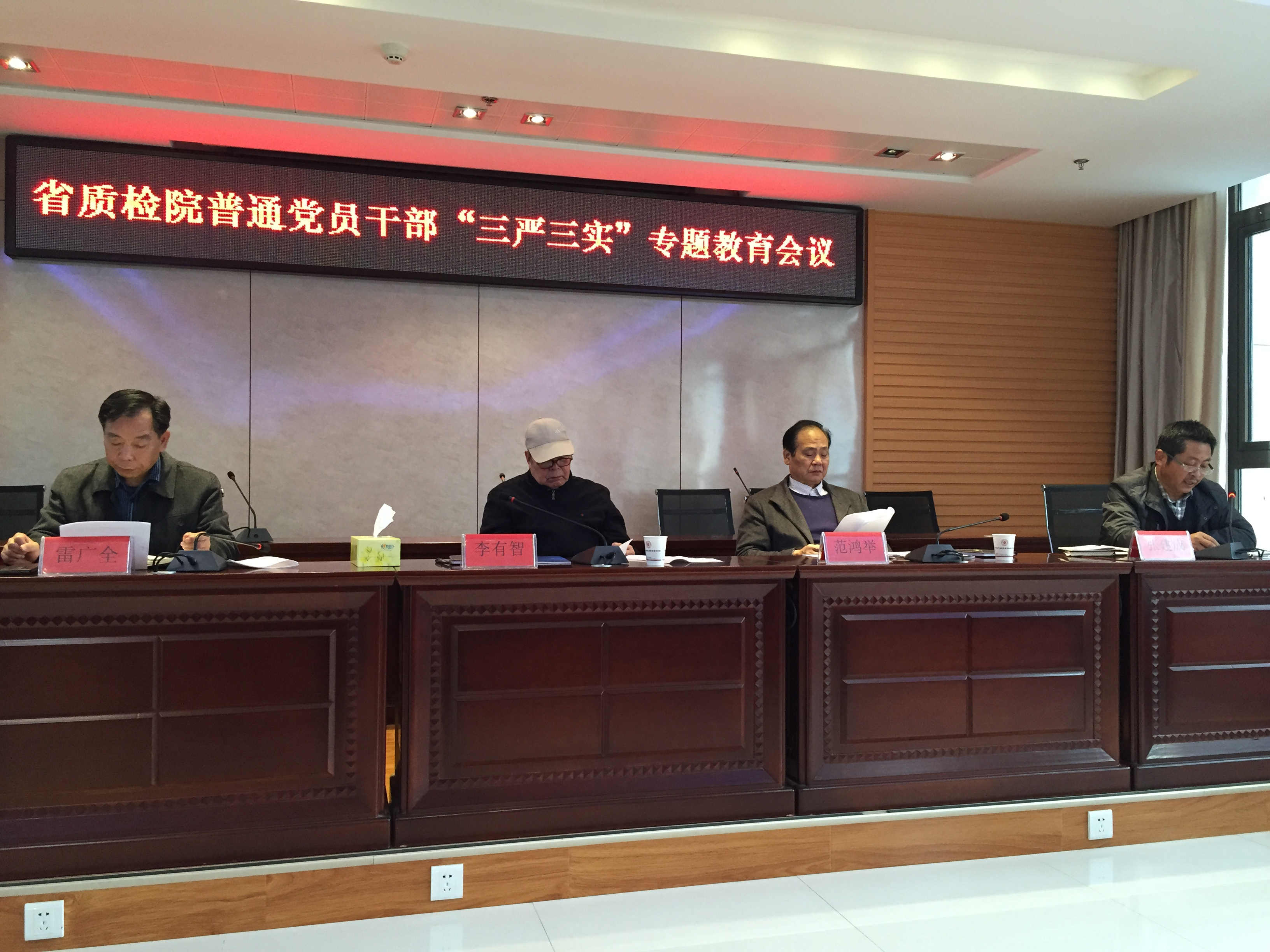 根据省局党组要求和我院《开展普通党员、干部“三严三实”专题教育活动指导意见》安排,2015年11月13日上午,我院全体普通党员、中层干部在院七楼会议室开展了专题教育第一阶段集中学习;省局督导组李有智、范鸿举亲临学习现场,全程督导了教育学习环节。集中学习教育由院党委书记雷广全同志主持。第一阶段集中学习共进行了4项内容: