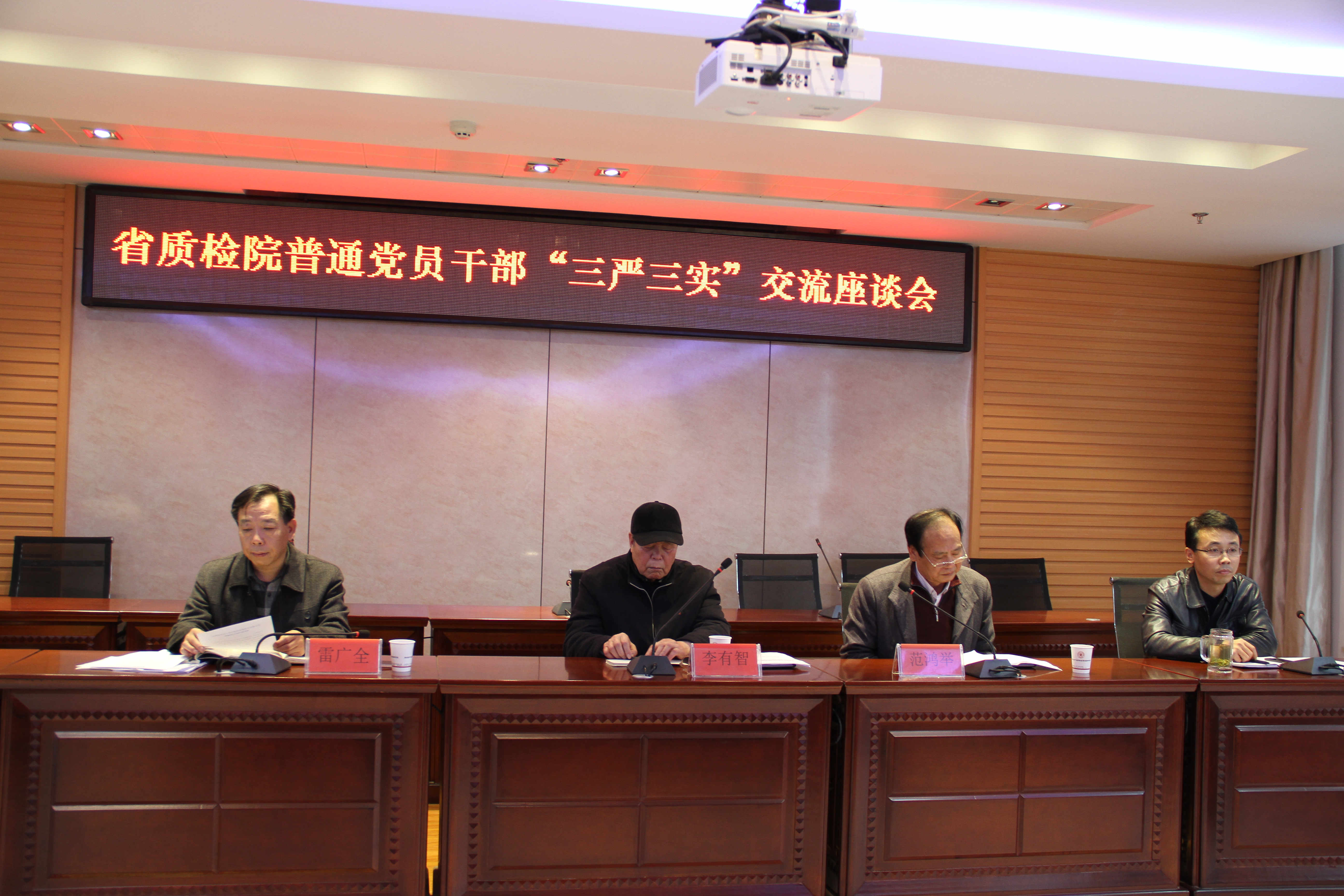 根据省局党组要求,按照我院《普通党员干部开展“三严三实”专题教育指导意见》安排,我院于2015年11月24日下午在院七楼大会议室召开了普通党员、干部“三严三实”学习体会交流座谈会,省局督导组成员李有智、范鸿举亲临现场并作了讲话,全程督导了教育学习环节,院党委书记雷广全作了重要讲话,交流座谈会由人事监察部主任王鹏主持。