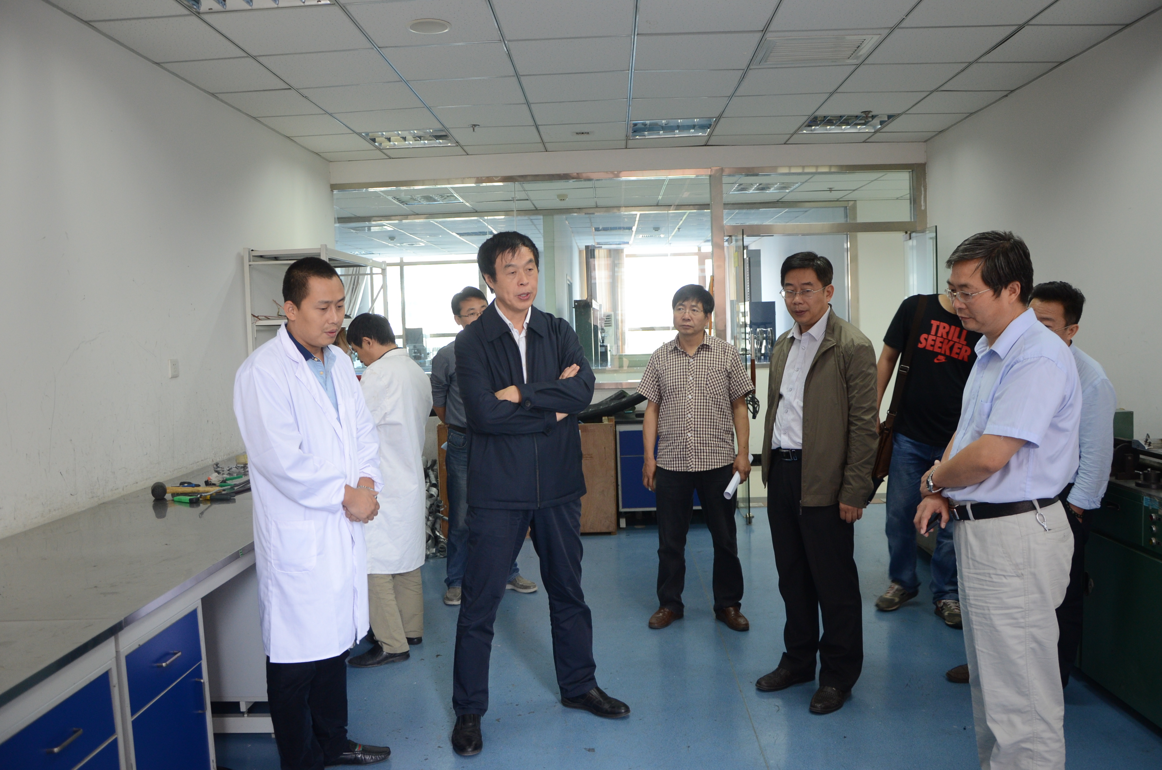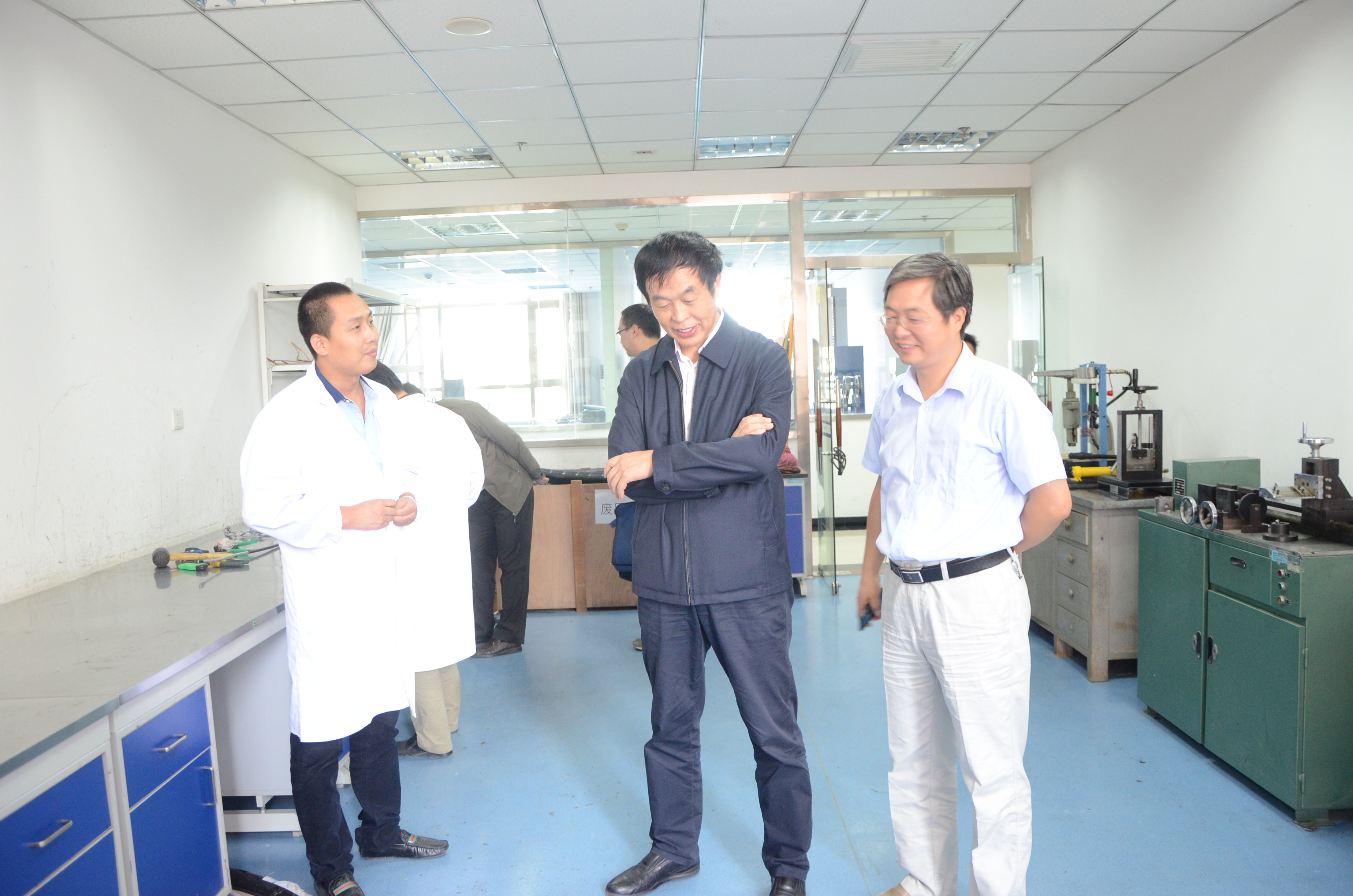 魏恒星副局长在院总工高宏星和首席检验师田玉民陪同下参观了我院家具中心、珠宝中心和电线电缆中心,对我院建设专业化实验室表示赞赏。