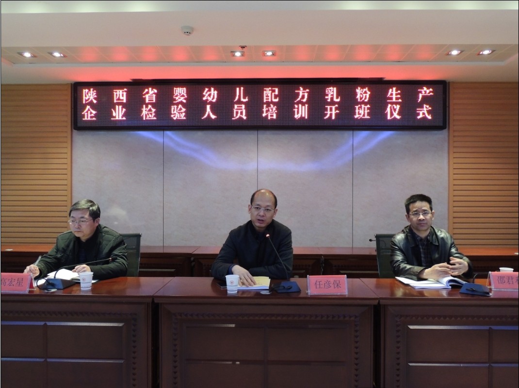 3月5日上午,全省婴幼儿乳粉企业检验员培训班在陕西省产品质量监督检验研究院举行开班仪式。省食药局副局长任彦保出席仪式并作重要讲话,省食药局乳品及饮品处邵君利处长、省质检院总工程师高宏星也出席了开班仪式。
