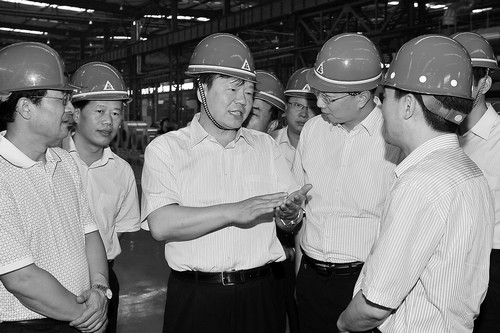 陕西省省长娄勤俭在2014年省政府工作报告中强调,“大力实施质量强省战略,严厉打击制售假冒伪劣产品行为”。图为省长娄勤俭(左三)在省名牌企业调研。