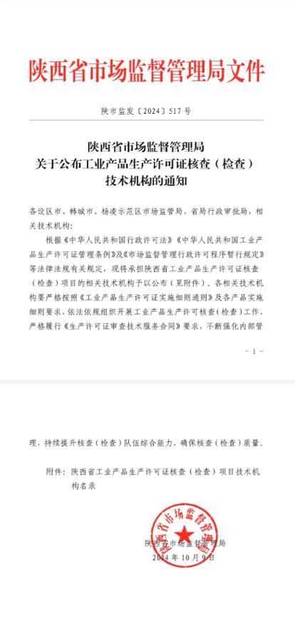 10月9日,陕西省市场监督管理局公布了《工业产品生产许可证核查(检查)项目技术机构名录》,我院获批成为省局工业产品生产许可证审查机构之一。此次获批是我院在2021年获批危险化学品包装物及容器产品的基础上,新增加了电线电缆产品,标志着我院在工业产品生产许可证技术核查领域的服务范围和能力得到了进一步拓展和提升。