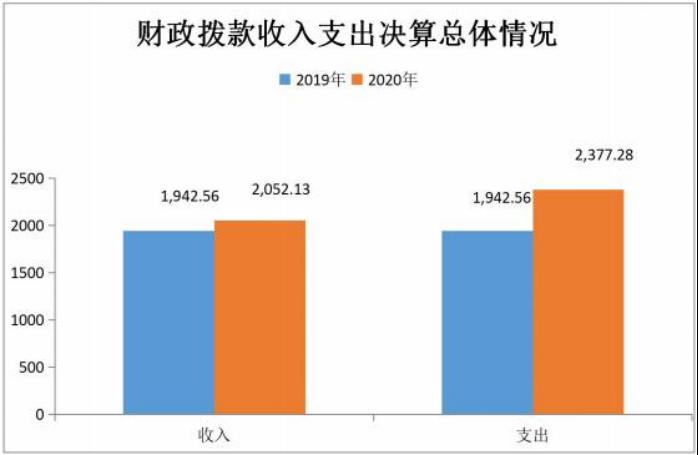2020 年财政拨款收入总计 2,052.13 万元,较上年增加 109.57 万元,增加了 5.6%。增加的主要原因是日常活动经费增加。