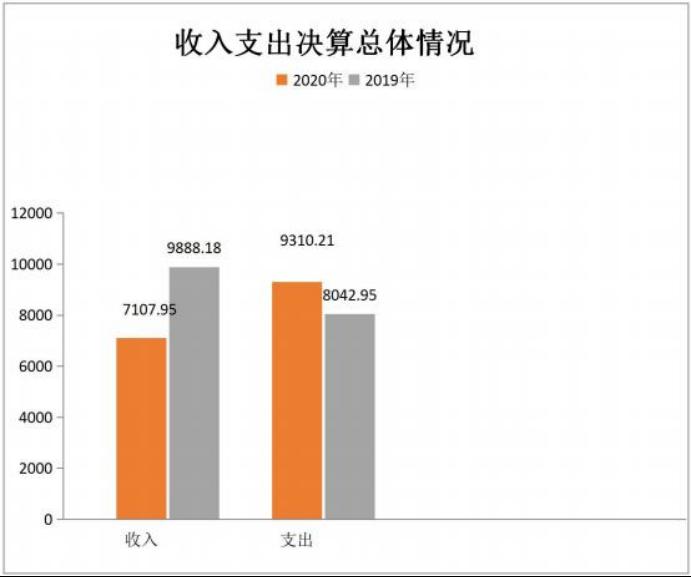 2020 年收入合计 7,107.95 万元,其中:财政拨款收入 2,052.13 万元, 占 28.87%;经营收入 5,012.81 , 占 70.52%;其他收入43.02 万元, 占 0.61%。