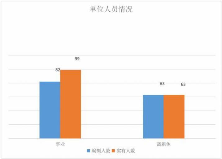 截止2020 年底,本单位人员编制 82 人,其中行政编制 0 人、事业编制82 人;实有人员 99 人,其中行政 0 人、事业 99 人。单位管理的离退休人员63 人。