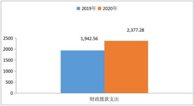 2020 年财政拨款支出总计 2,377.28 万元较上年增加 434.72万元,增加了22.38%。支出增加主要原因是上年结转专项经费至本年支出。