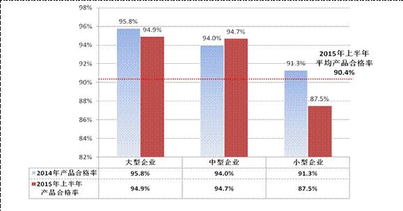 (三)轻工产品。上半年抽查了2种120家企业生产的120批次产品,产品抽查合格率为95%,比2014年提高了9个百分点。纸尿裤和卫生巾(含卫生护垫)2种产品抽查合格率均为95%。