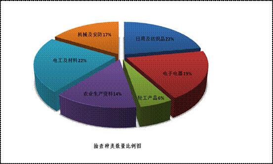 (四)农业生产资料。上半年抽查了5种348家企业生产的348批次产品,产品抽查合格率为95.1%,比2014年提高了3.9个百分点。其中,杀虫灯产品抽查合格率为100%;磷酸一铵/磷酸二铵、脱粒机、植物保护机械和农用薄膜4种产品抽查合格率均在90%以上。(五)电工及材料。上半年抽查了8种543家企业生产的543批次产品,产品抽查合格率为87.8%,比2014年降低了4个百分点。其中,稀土氧化物产品抽查合格率为100%;镁碳砖和钢丝绳2种产品抽查合格率均在90%以上;非金属密封板、砂轮、阀门、动力用煤和海水及苦咸水利用膜产品等5种产品的产品抽查合格率均在90%以下。
