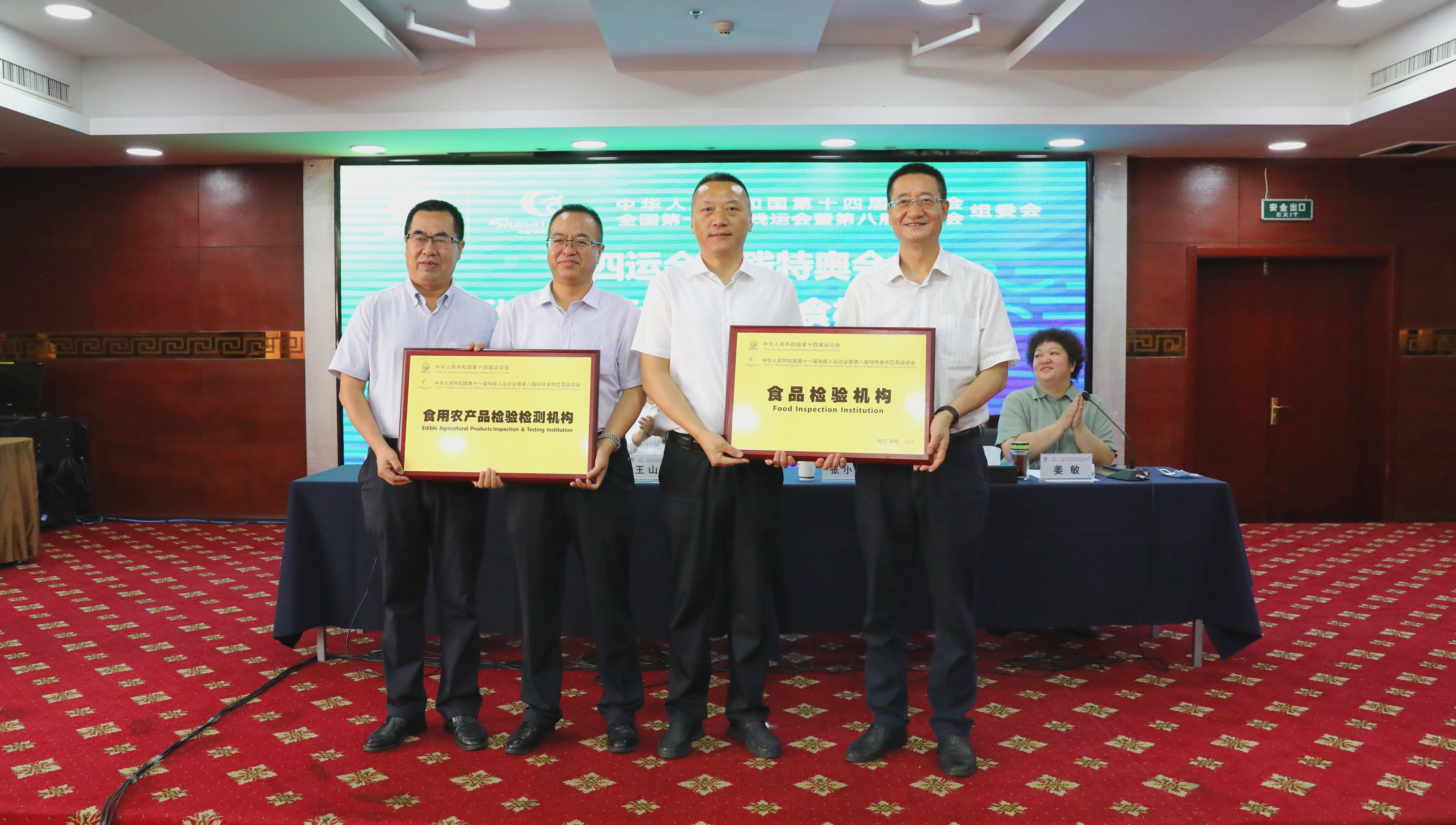 8月21日上午,十四运会和残特奥会新增食品承检机构和食材供应商授牌仪式在西安体育宾馆举行,我院欣获授牌。省政府副秘书长、组委会执行副秘书长王山稳,省市场监管局局长、组委会食品药品安全保障部部长张小宁,省市场监管局副局长、组委会食品药品安全保障部驻会副部长姜敏,省农业农村厅分管负责人,组委会相关负责部门,各承检机构、食材供应商负责人及相关工作人员参加。仪式由姜敏主持。我院院长段勇,农副食品所副所长樊成、舒静参加仪式,段勇院长作《以实干践行使命,以实绩回报信任,为办一届精彩圆满的体育盛会贡献质检力量》表态发言。