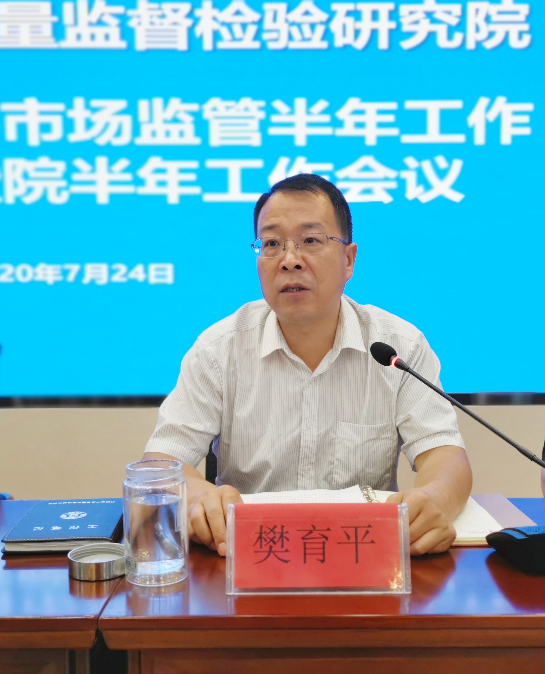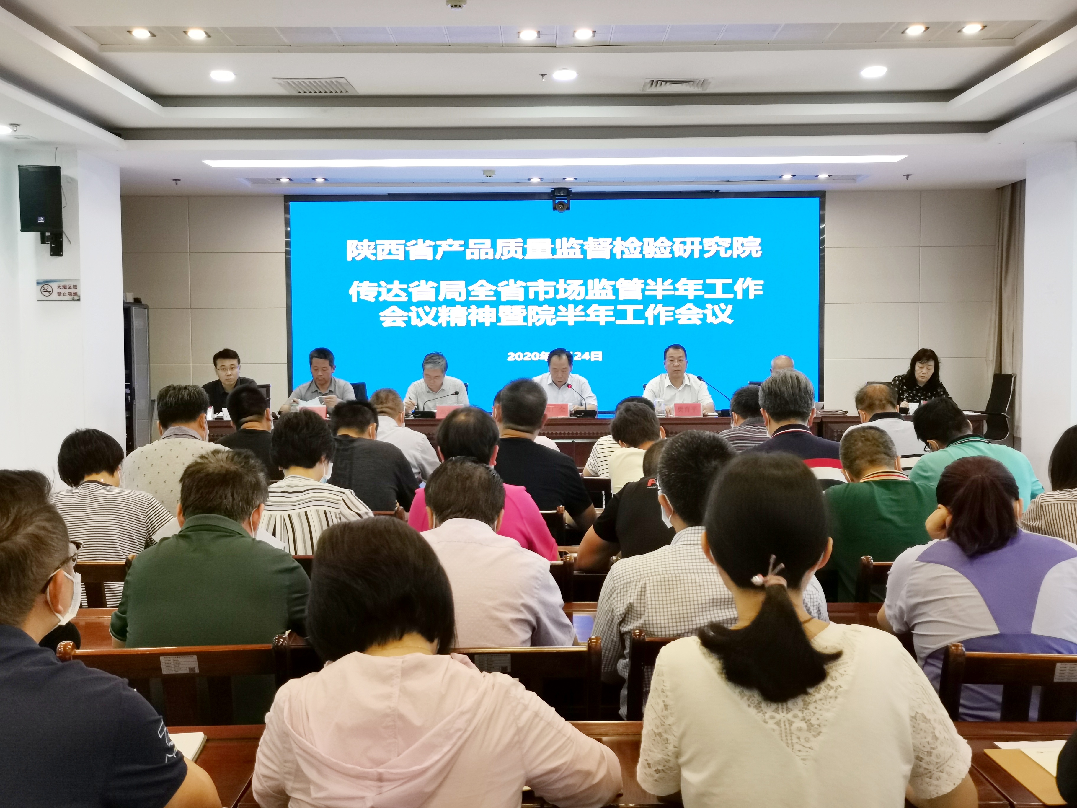 2020年7月24日,省质检院在院大会议室召开了传达学习全省市场监管半年工作会议精神暨院半年工作会议。会议由院长雷广全主持,院领导班子成员、各部门负责人(支部书记)共45人参加会议。