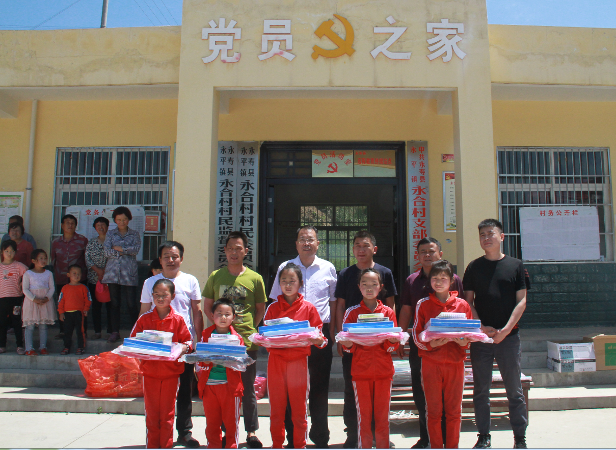 5月29日,在“六一”儿童节即将来临之际,省质检院党委书记樊育平带领院扶贫办公室同志一行4人前往对口帮扶的永寿县永合村,为永合村少年儿童送上书包、文具盒、笔记本等节日礼物。
