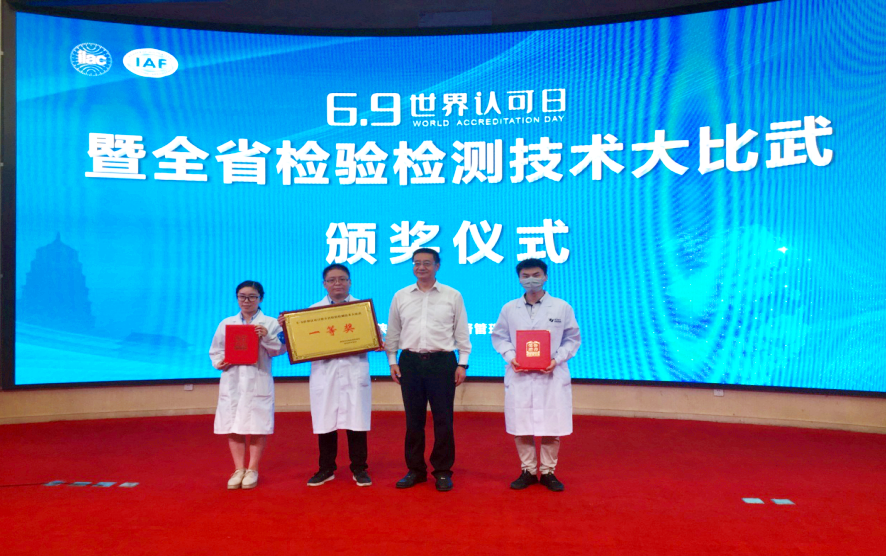 6月9日,省质检院在省市场监督管理局举办的2020年“世界认可日——认证认可检验检测:守住安全底线,服务复工复产”主题宣传周活动启动仪式暨全省防疫用品检验检测技术大比武活动中,荣获“全省防疫用品检验检测技术大比武团体一等奖。”