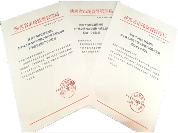省市场监管局于2019年5月10日分别发文批准省质检院成立“陕西省金属材料产品质量监督检验中心”“ 陕西省燃气器具产品质量监督检验中心”“陕西省安全防护用呼吸及配套设备质量监督检验中心”。