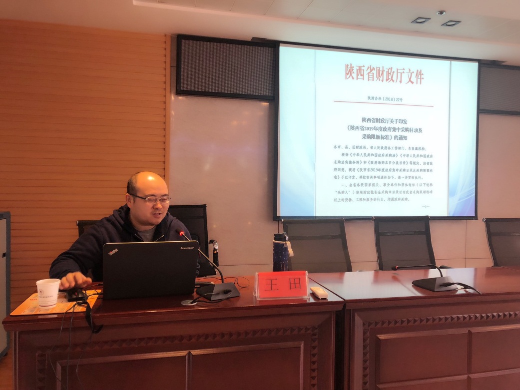 王田同志主要围绕《陕西省2019年政府采购目录和限额标准》(陕财办采〔2018〕22号)文件展开,深入讲解了政府采购预算、采购目录、采购限额标准、采购人的权利和义务以及政府采购方式;并结合采购管理处日常工作分析了陕西省省级单位政府采购实施状况和实际情况,指出了省级单位现阶段政府采购存在的问题及操作风险;对陕西省财政厅政府采购未来年度的重大调整和信息系统创新等进行了详细介绍,从而帮助省级单位准确理解和把握制度措施,确保在采购过程中对文件精神落实到位。最后,参会人员针对培训内容和实际工作中遇到的疑惑与授课老师进行了深入的咨询交流。