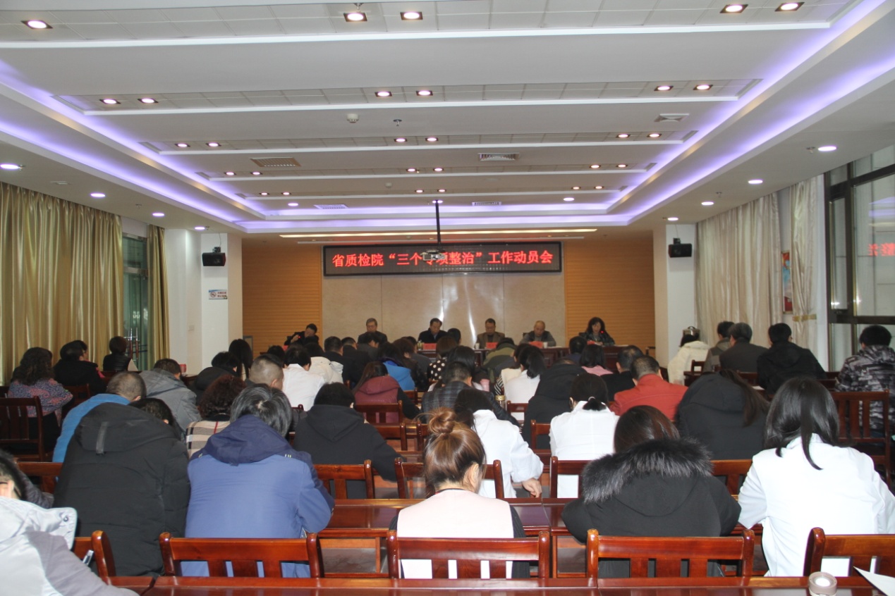 为进一步贯彻落实习近平总书记重要指示精神,深入推进全面从严治党,持之以恒深化作风建设,2019年1月4日,我院召开了整治形式主义和官僚主义、领导干部利用名贵特产类特殊资源谋取私利问题和违规收送礼金问题“三个专项整治”工作动员会。会议由党委书记樊育平主持,院领导、全体干部职工参加了动员会。