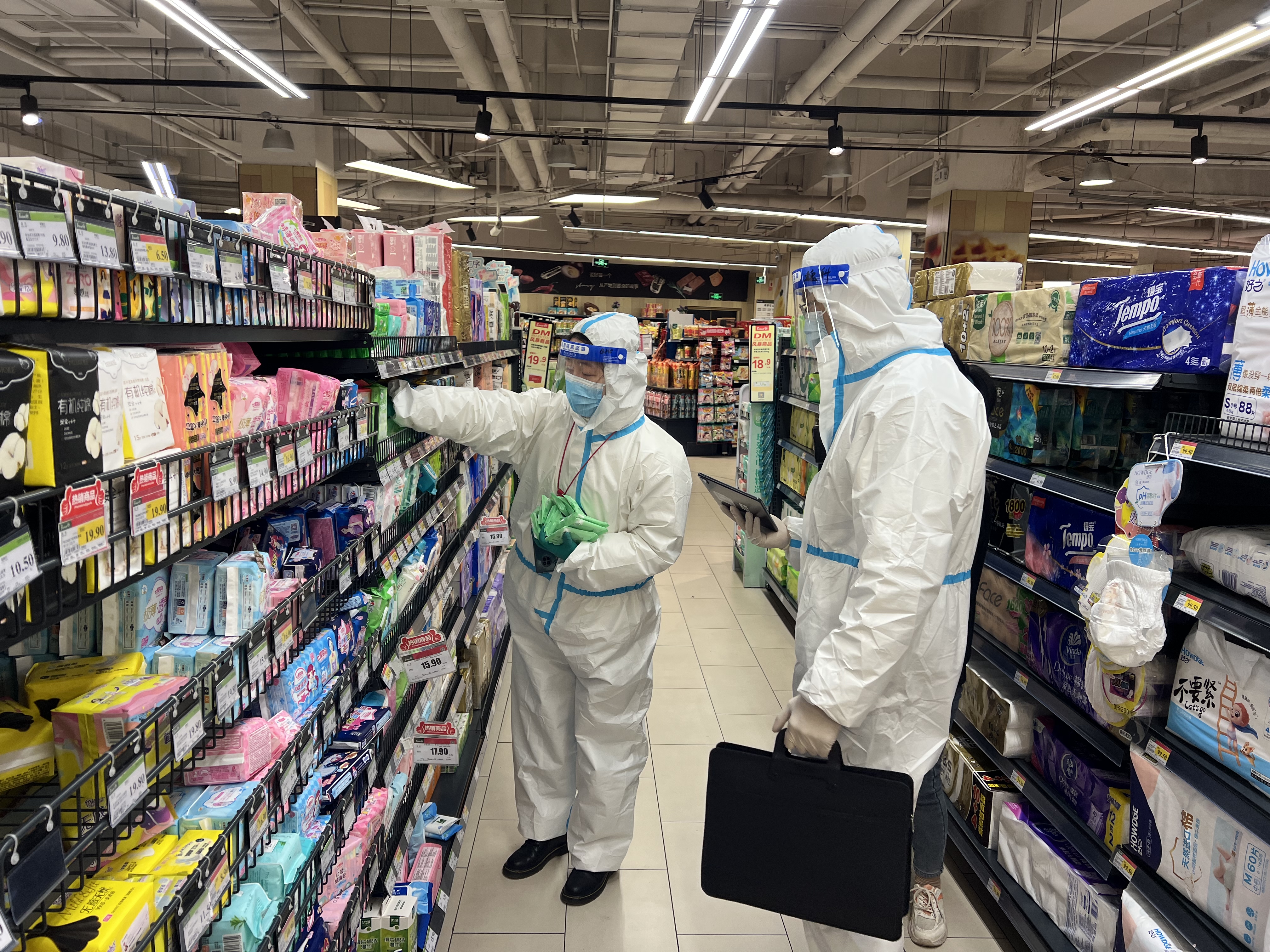 12月25日晚,经专家评审通过后,院领导、相关部门负责人、抽样和检测人员连夜召开专项抽查任务视频会议,紧急部署相关工作任务,协调组成4组精干抽样力量,安排抽检进度和防疫事项。12月26日早7点40分,4组抽样人员不惧风雪,不畏严寒,不怕困难,全部到岗到位;8点40分,将抽查文件,封条、口罩、防护服,视频记录仪、平板电脑、便携式打印机等抽样文书等相关工具全部准备完毕;9时许,由化工所、轻工建材所主任带队,各抽样小组相继出发,奔赴各大超市、便利店等经营单位,紧张有序的专项监督抽查行动就此开始......