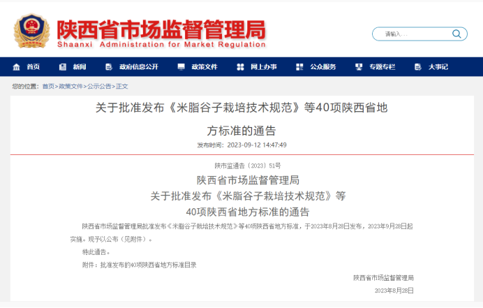 2023年8月28日,经陕西省市场监管局(陕市监通告〔2023〕51号)批准,由省质检院牵头编制的陕西省地方标准《消费品召回工作规范》(系列标准)获批发布,将于2023年9月28日起正式实施。