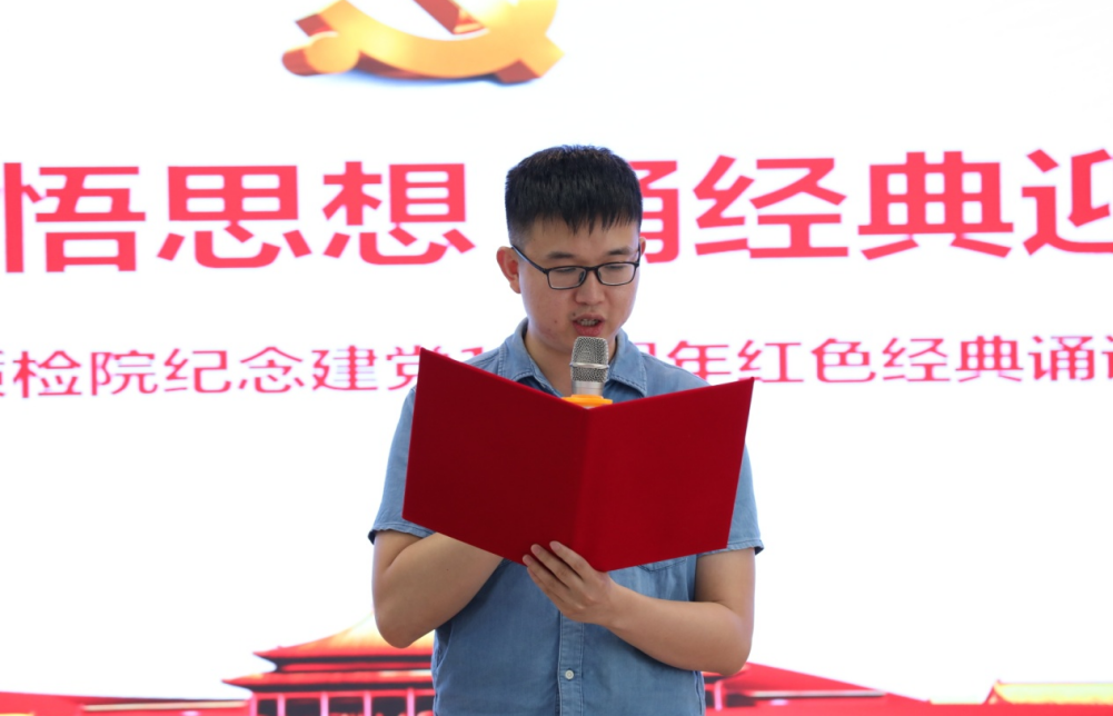 为庆祝中国共产党成立100周年,激发青年干部职工爱党爱国热情,激励他们忠诚履职尽责、勇于担当作为,为持续推动质检事业高质量发展贡献力量,6月10日,院团总支组织全院青年干部职工开展了“学党史悟思想 诵经典迎百年”红色经典诵读活动,院领导班子全体成员出席活动,各部门负责人、职工代表共计90余人参加活动。