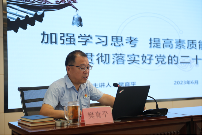 随后,樊书记以《加强学习思考提高素质能力贯彻落实好党的二十大精神》为主题,围绕掌握一点哲学思维,知晓事物发展的规律;掌握一点人文历史,明白社会发展的方式;掌握一点地理常识,开阔了解世界的眼界;掌握一点自然科学,增加明辨是非的能力;掌握一点金融知识,明白现代生活的基础;加强学习和思考,提高个人综合素质和能力;学习掌握党的最新理论成果,不忘初心使命,永葆奋斗精神七个方面,为院党员干部作了一场非常深刻的党课宣讲。党课内容旁征博引,内容丰富,理论性强,说理深入浅出,举例形象生动,具有很强的指导性和针对性。最后要求,院党员干部要认真学习消化,走好新时代的征程之路,提升自身素质基础,实事求是的工作作风。要以只争朝夕、时不待我的姿态,以彻底的自我革命精神,扎扎实实贯彻落实好党的二十大精神,共同推动陕西质检高质量发展。
